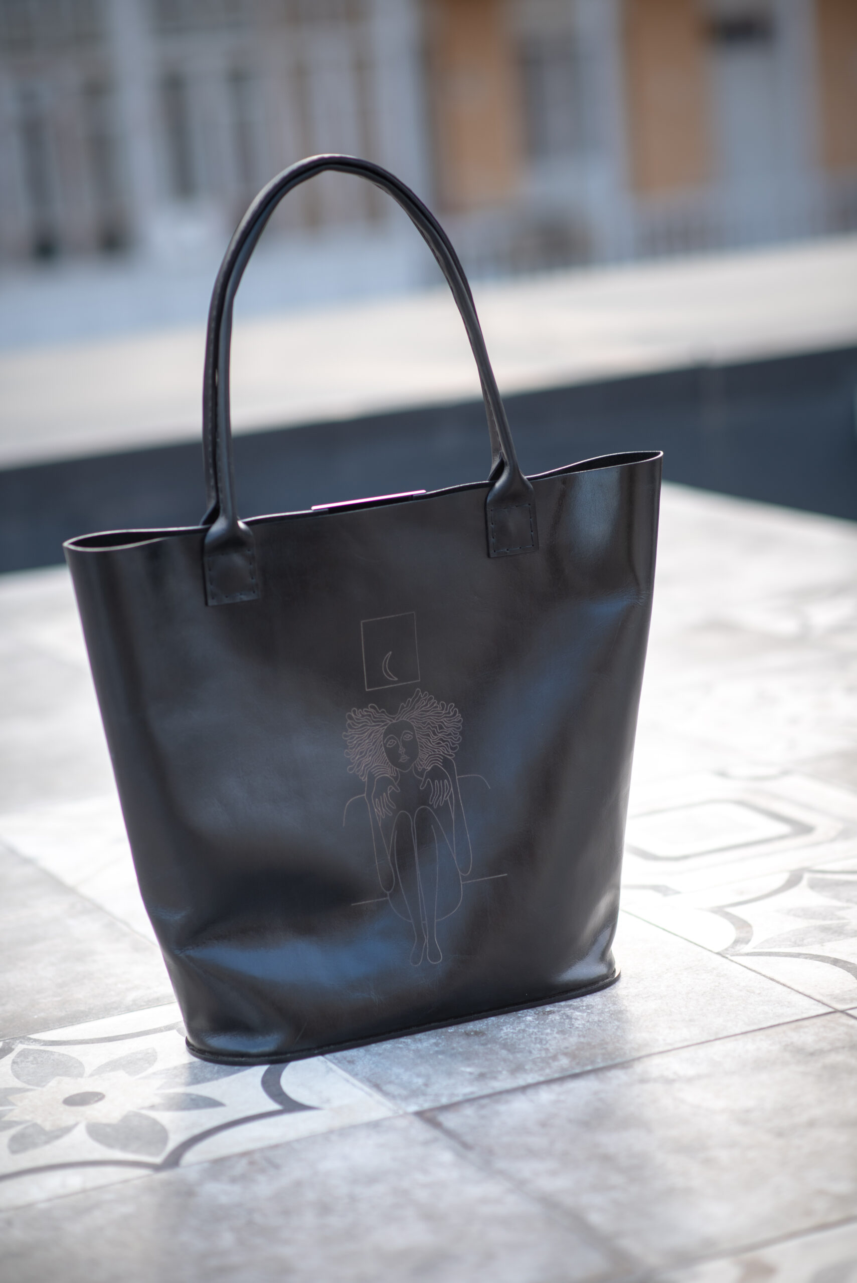 • Artistry: Features an intricately engraved graphic artwork directly on the leather surface.